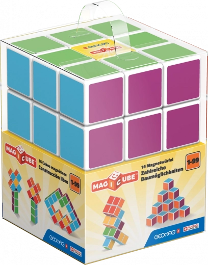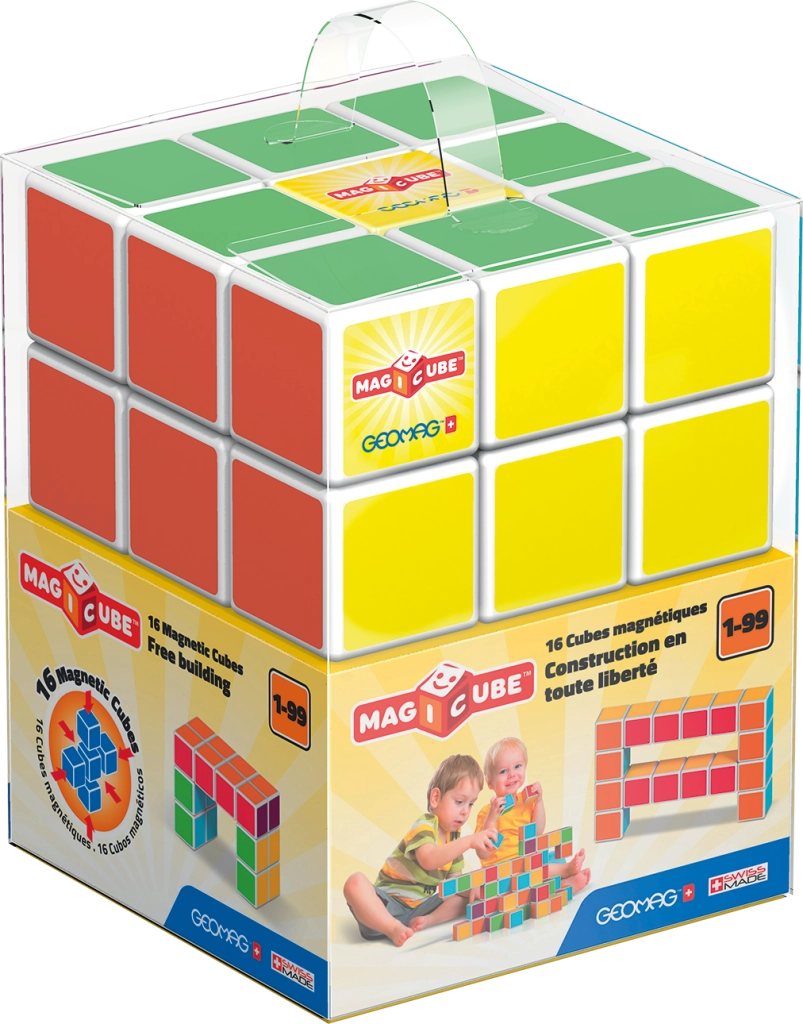 Gradite, istražujte i učite s raznobojnim magnetskim kockama Geomag Magicube. Zahvaljujući jedinstvenoj konstrukciji kocke se privlače sa svih strana, nude beskrajne mogućnosti slaganja i potiču finu motoriku, prostornu maštu i logičko razmišljanje. Svaka je strana različite boje, što kocke čini izvrsnim edukativnim alatom za dom i školu. Pakiranje sadrži 16 magnetskih kocaka proizvedenih u Švicarskoj od reciklirane plastike, prikladno od 1. godine.