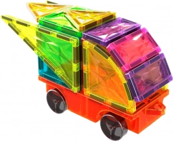 Ova šarena slagalica donosi otvorenu igru i beskrajne mogućnosti građenja. Integrirani magneti na svim stranama oblika omogućuju jednostavno i stabilno spajanje, pa djeca mogu brzo sklapati vlastite aute, prikolice i originalne 3D konstrukcije. Igra prirodno razvija prostornu predodžbu, učenje boja i geometrijskih oblika.