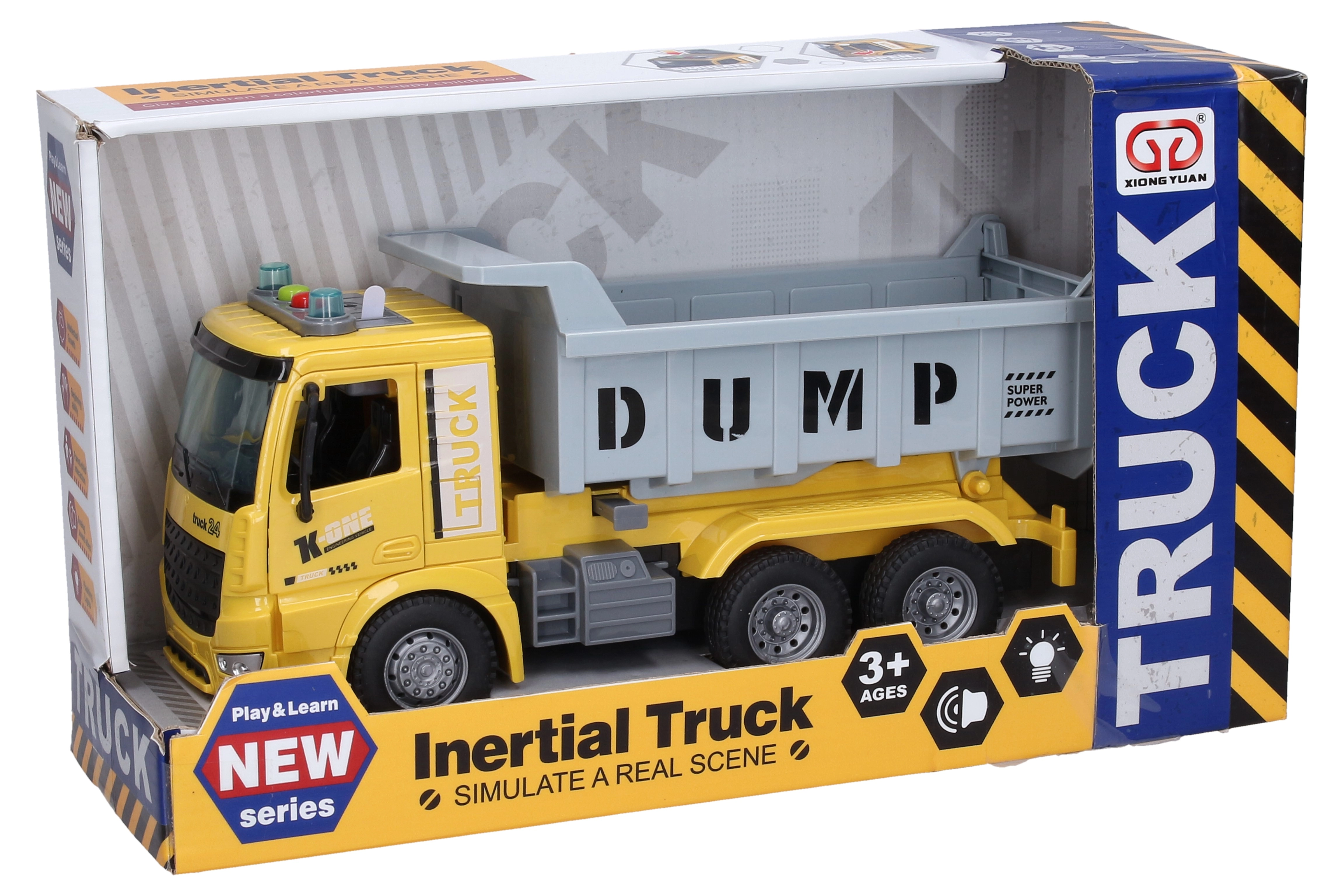 Na krovu vozila nalaze se dvije funkcijske tipke: jedna pokreće zvuk motora i kipanje, druga zvuk vožnje unatrag i trubljenje. Karoserija je kiperska – upravlja se gumbom sa strane. Baterije 3× AG13 (1,5 V) uključene su u pakiranje, pa se djeca mogu igrati odmah nakon raspakiravanja.