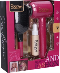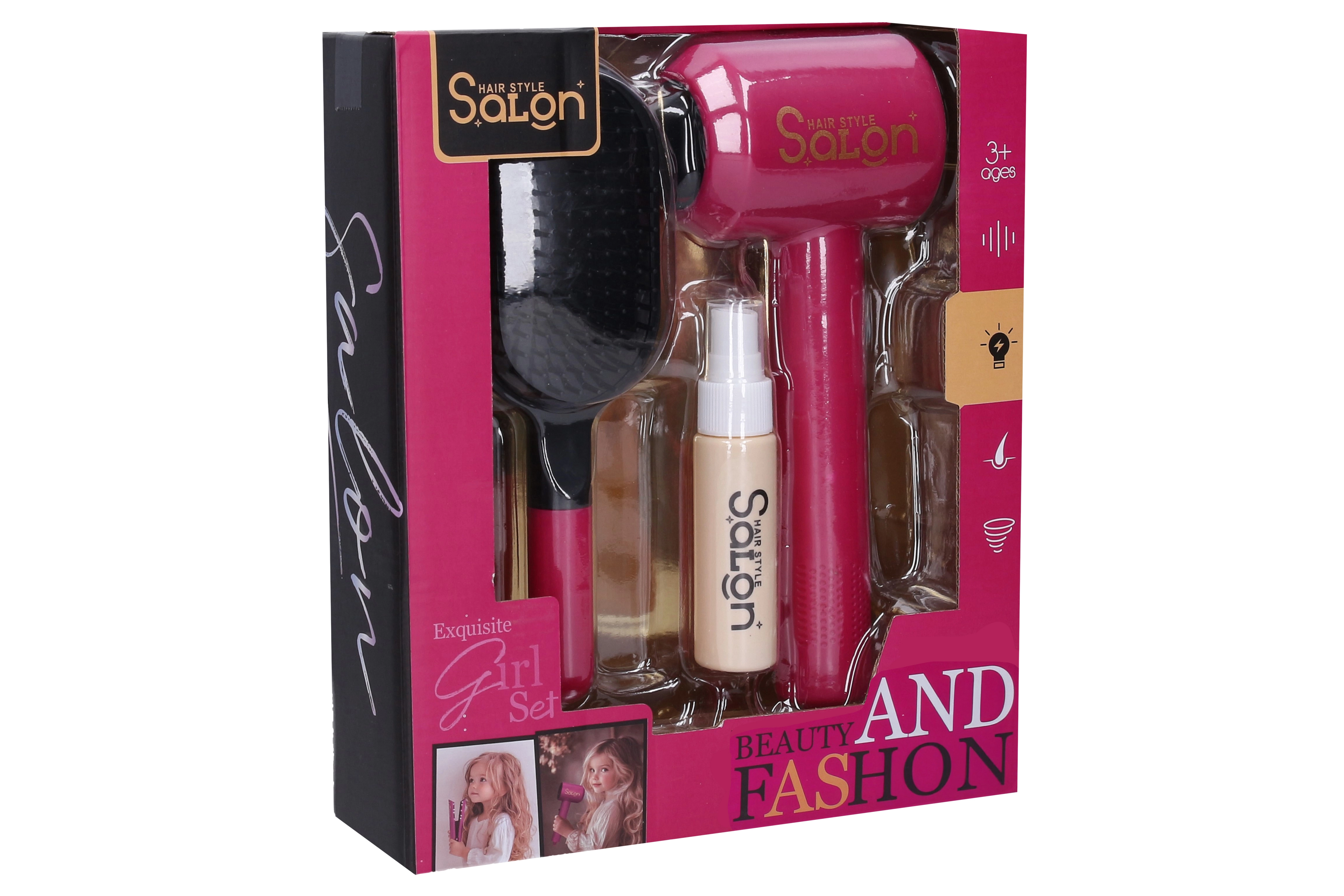 Dječji kozmetički set s funkcionalnim sušilom za kosu razveselit će male šminkerice. Sastavni dio su sušilo na baterije, četka za kosu i sprej. Sušilo se lako upravlja gumbom i napaja se s 2× AA baterije (nisu uključene). Idealan za kreativnu igru frizerskog salona i razvoj mašte.