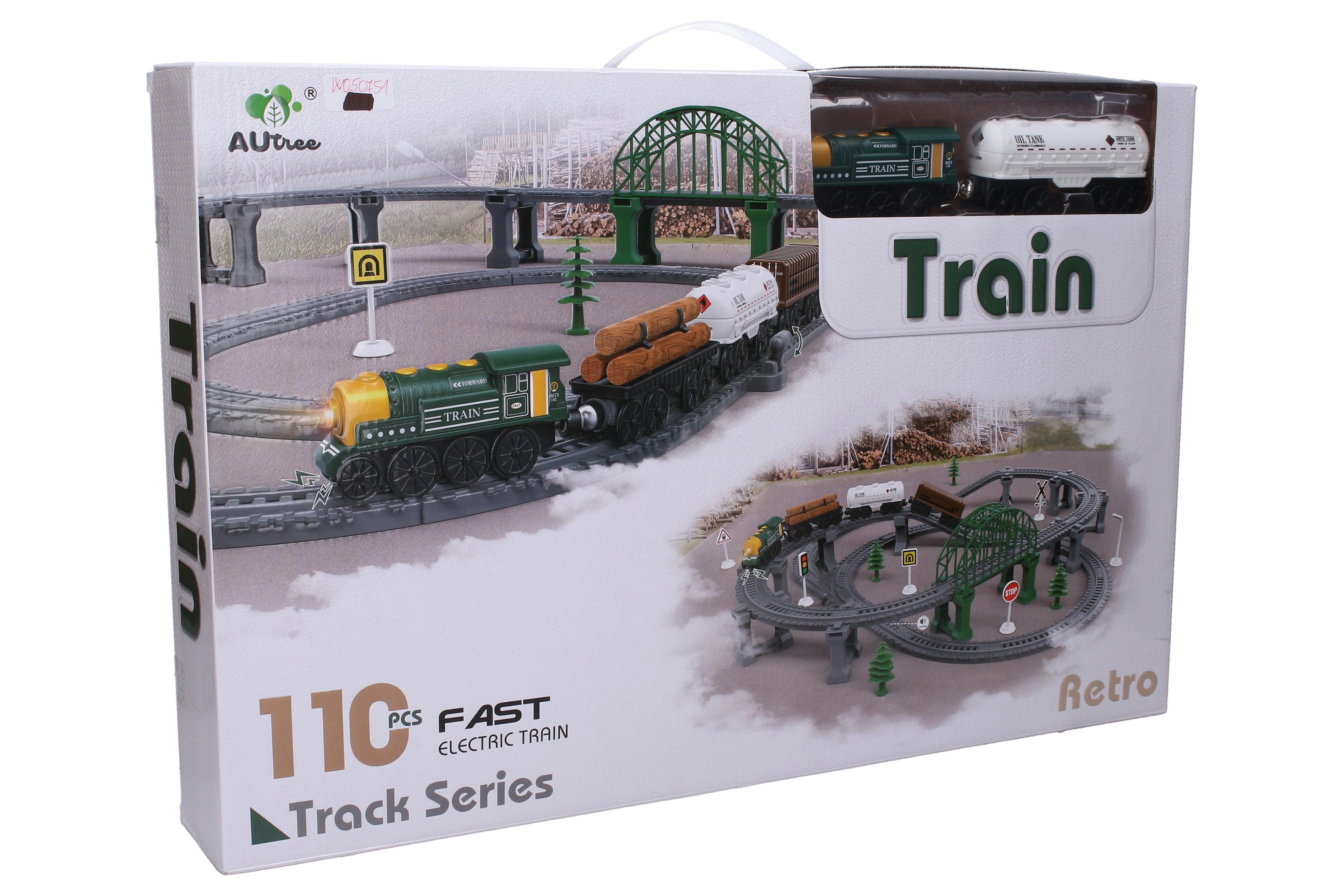 Otkrijte zabavnu vlakovsku prugu sa zvučnim efektima koja će oduševiti male ljubitelje vlakova. Set od 110 dijelova nudi dimenzije nakon sastavljanja 77 × 76 × 16 cm, vlak s magnetskim povezivanjem i upravljanje izravno na lokomotivi. Odabrani dijelovi pruge pokreću realistične zvukove, a djeca mogu voziti naprijed i natrag zahvaljujući tipkama za smjer. Baterije za prugu su uključene u pakiranje, a za lokomotivu se kupuju zasebno.