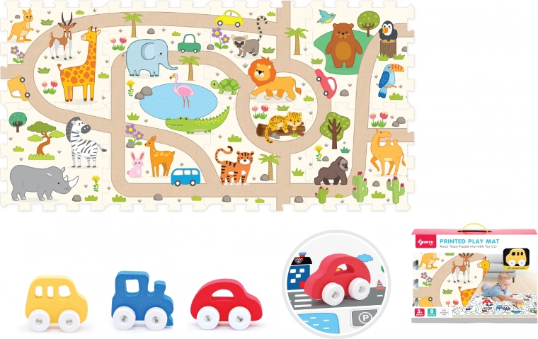 Otkrijte zabavnu i sigurnu igru s ovim setom mekanih blokova i safari autićem. Set sadrži 8 mekanih blokova dimenzija 31,5 × 31,5 × 1 cm i autić s kotačima slobodnog hoda, koji potiče kreativnost, motoriku i sigurnu igru kod kuće i u vrtiću.