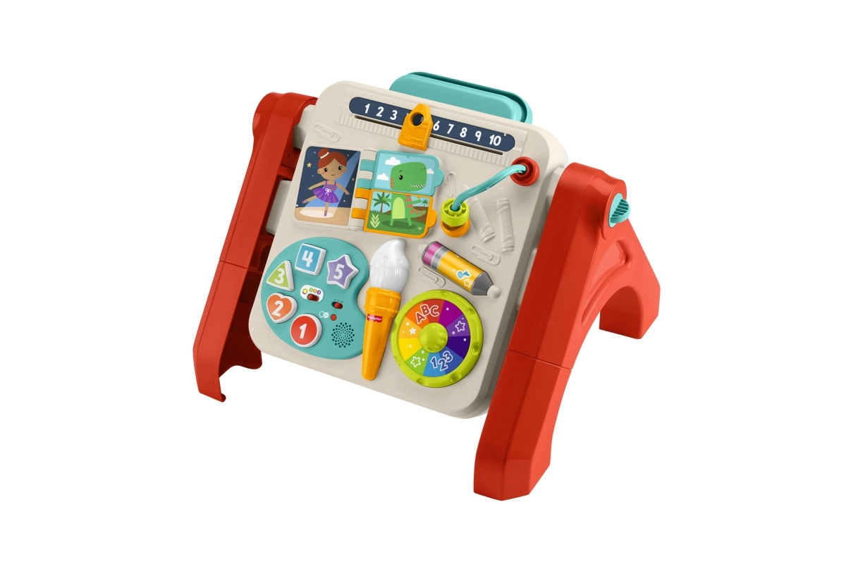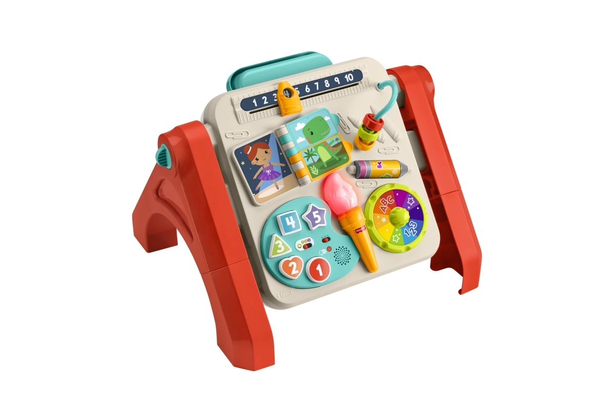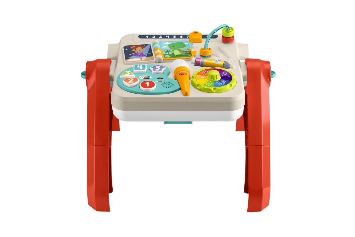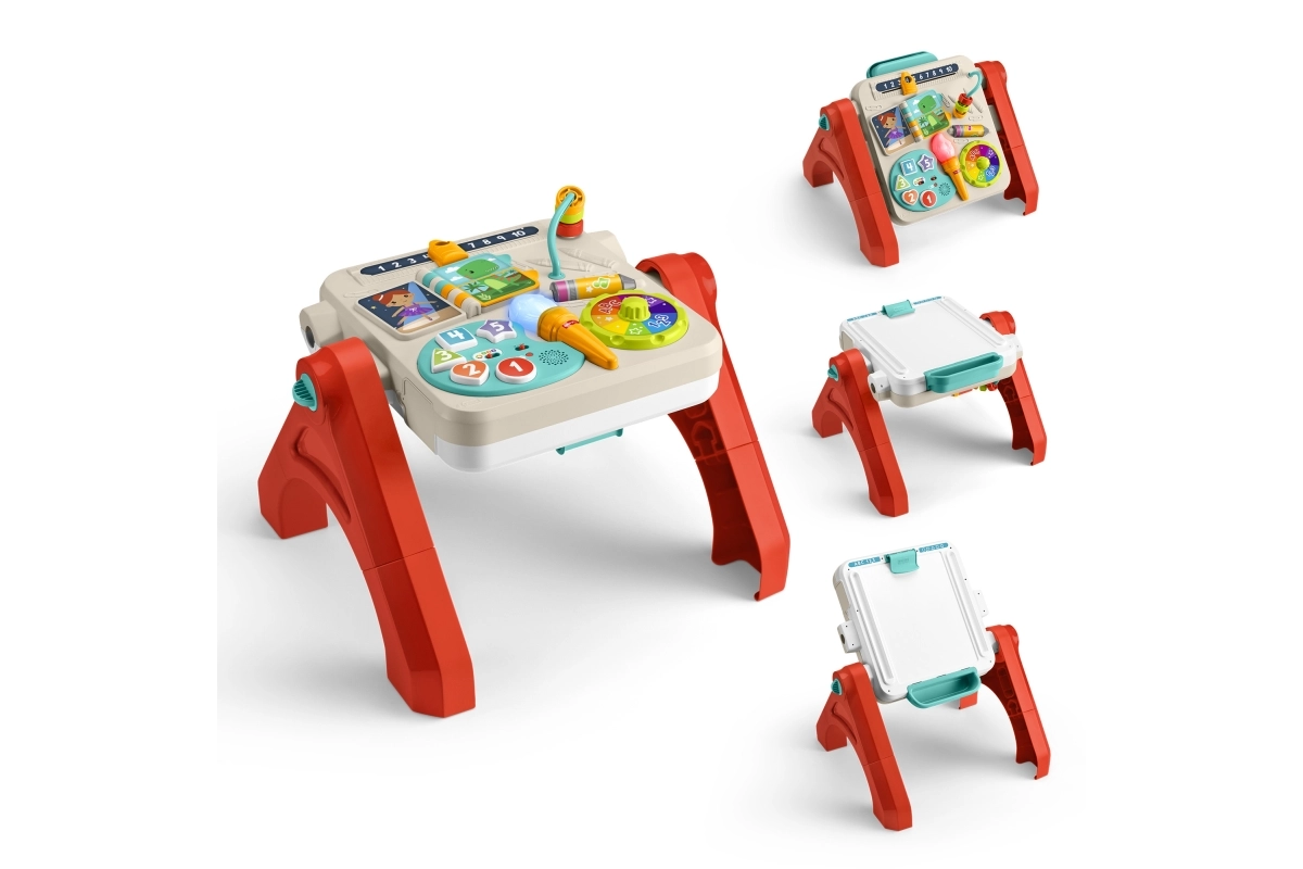 Otkrijte svestrani igraći stolić 4 u 1 koji rastući prati dijete od sjedenja do samostalnog stajanja i stvaranja. Interaktivna ploča podučava brojeve, boje i oblike, nudi više od 125 zvukova, fraza i pjesmica te sustav Smart Stages za prilagodbu dobi. Zahvaljujući sklopivim nogama i režimu stojeće ploče s klipom za papir i pretincem za pribor potiče glazbene, osjetilne i likovne vještine djece od 6 mjeseci.