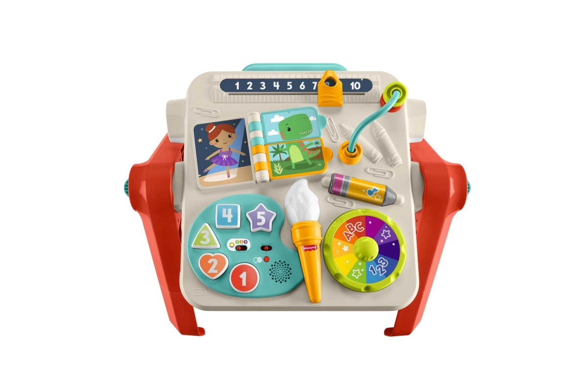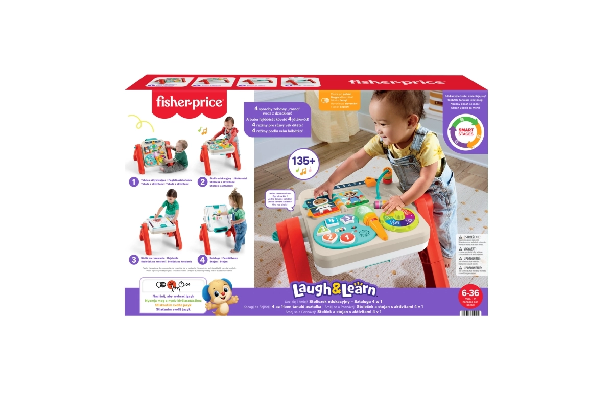 Interaktivni stolić FISHER-PRICE 4 u 1 donosi pametno učenje kroz igru u svakoj fazi razvoja. Djecu zabavlja paleta “umjetnika” s podukom brojeva, boja i oblika, šarena rotirajuća ploča s glazbom, okretna knjižica, letvica s perlicama i spiner za razvoj fine motorike. Načine Smart Stages lako prilagodite dobi i napretku djeteta.