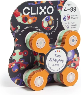 CLIXO Tiny & Mighty Space je tematski magnetski set koji svijetli u mraku i potiče beskrajno stvaranje. Savitljivi dijelovi od kvalitetnog sintetičkog papira zahvaljujući jakim magnetima lako se spajaju, drže oblik i omogućuju gladak 360° rotacijski pokret s fiksacijom u 24 položaja za stabilne konstrukcije. Idealno za dom, vrtić i putovanja.