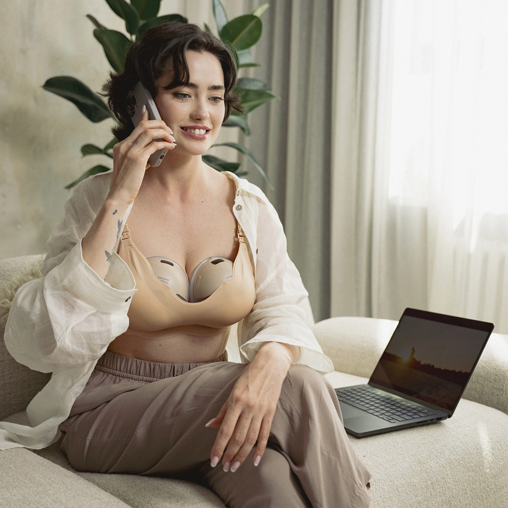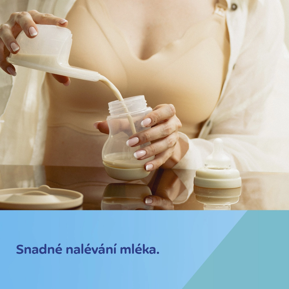 Diskretna hands‑free konstrukcija za grudnjak, razina buke do 50 dB, težina samo 220 g i volumen posudice 180 ml. Idealno za dom, posao i putovanja.