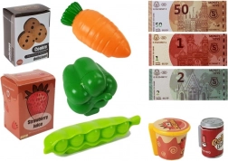 U kompletu je kupovna košarica i set namirnica zahvaljujući kojima se djeca lako uživljavaju u ulogu prodavača i kupca te razvijaju socijalne vještine.