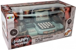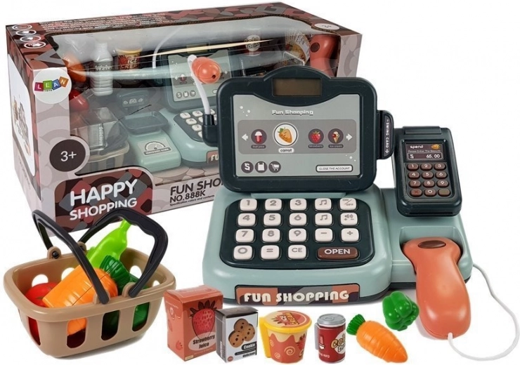 U pakiranju je sve potrebno: blagajna s vagom i čitačem kartica, ručni skener, košarica, igračke namirnice (keksi, sok, voda, sladoled, cola, povrće), platna kartica, novčanice i 6 plastičnih kovanica. Igra je maksimalno realistična te razvija dječju maštu i finu motoriku.