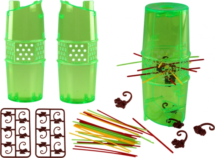 Složite toranj, provucite šarene štapiće i objesite na njih simpatične majmunčiće. Igrači naizmjenično izvlače štapiće i nastoje da padne što manje majmunčića. Jednostavna pravila, brze runde i mnogo smijeha – idealno za obiteljske večeri i dječje proslave.