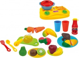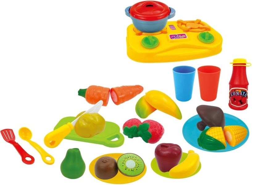 Praktična košara olakšava spremanje i prenošenje, pa je set prikladan i za igru kod kuće i za putovanja. Set nudi realističnu igru kuhanja, potiče uloge u igri te prepoznavanje boja i oblika.