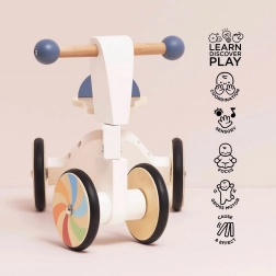 Stilsku vožnju za male istraživače: drvena guralica od FSC® certificiranog materijala s kotačima u bojama duge. Nudi udobno sjedalo, lako upravljiva upravljača i sigurne netoksične boje na bazi vode. Idealno za prve samostalne vožnje koje razvijaju ravnotežu i koordinaciju.