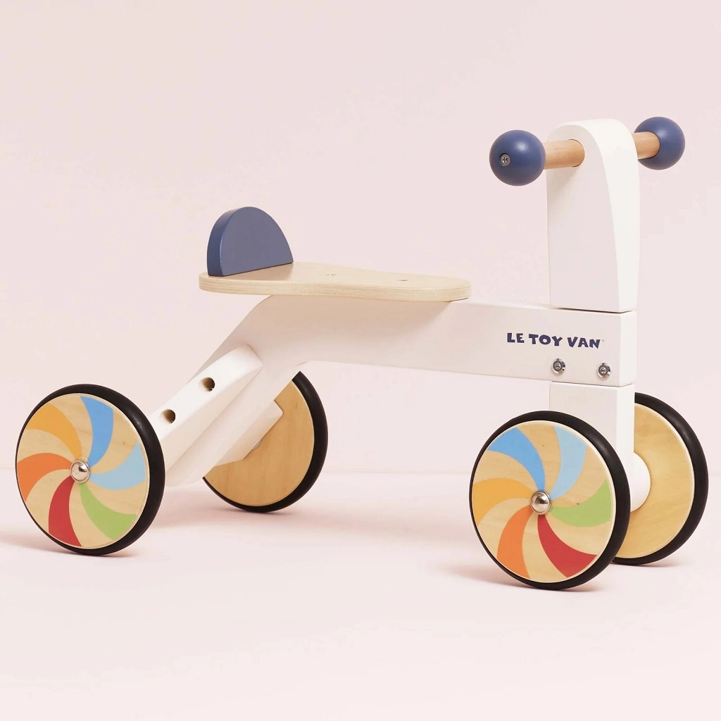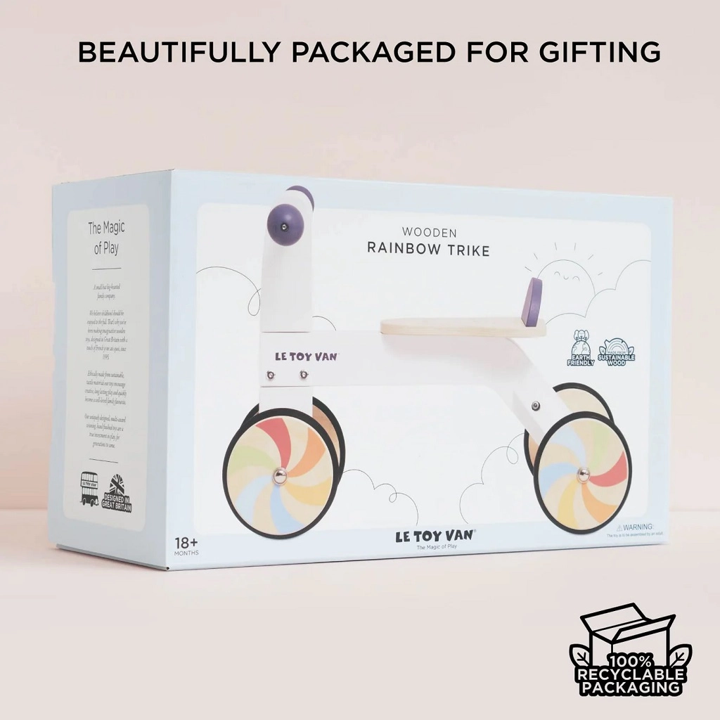 Otkrijte radost kretanja s elegantnom guralicom LE TOY VAN u duginom dizajnu. Pažljivo izrađena od FSC® certificiranog drva, spaja održivost, kvalitetu i razigran izgled. Zahvaljujući ergonomskom sjedalu i nježno upravljivim upravljačima savršen je izbor za djecu od 1,5 godine koja uče držati ravnotežu i razvijati motoriku.