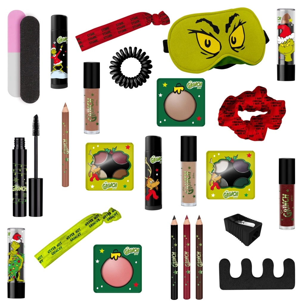 Ovaj razigrani adventski kalendar nadahnut likom GRINCH skriva 24 prozorčića punih kozmetike i dodataka. Svaki dan kreirajte drukčiji make-up – od prirodnog do izraženih blagdanskih lookova. Zahvaljujući raznolikom izboru proizvoda lako ćete urediti obrve, oči, usne i nokte te ih upotpuniti praktičnim pomagalima za svakodnevnu njegu.
