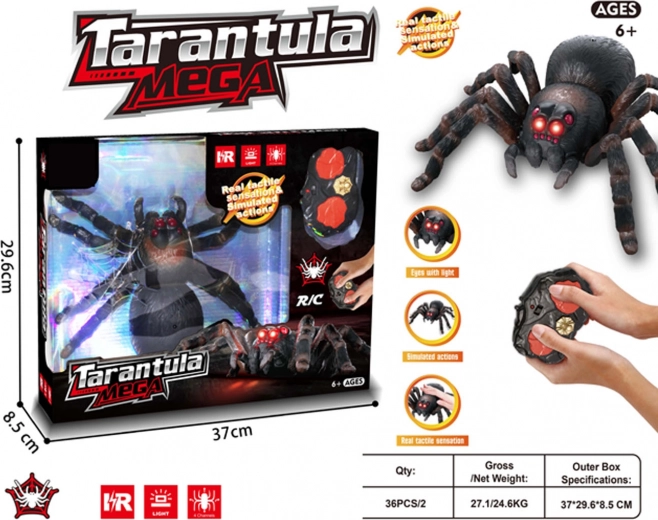 Ova mega tarantula zahvaljujući osam nogu i detaljnoj izradi djeluje vrlo realistično – idealna za igru, šale i tematske zabave. Upravljanje na frekvenciji 2,4 GHz osigurava stabilan signal bez smetnji, pa djeca mogu uživati u glatkom kretanju kod kuće i na manjim površinama.