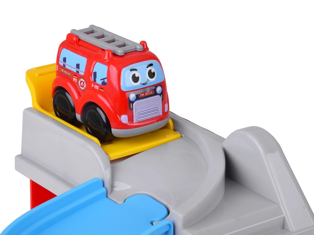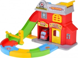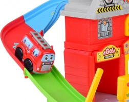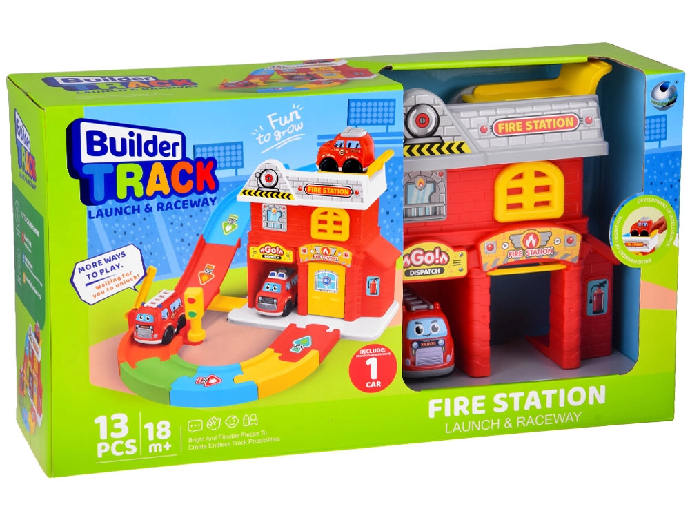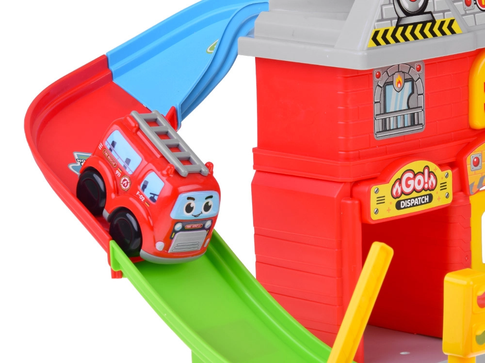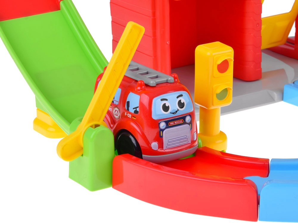 Šarena vatrogasna postaja s krivudavim/spiralnim spustom i vatrogasnim autićem donosi djeci sate zabave i razvoj vještina. Otvarajuća vrata, okidač na krovu, rampa i semafor potiču maštu, finu motoriku i razumijevanje uzroka i posljedice.