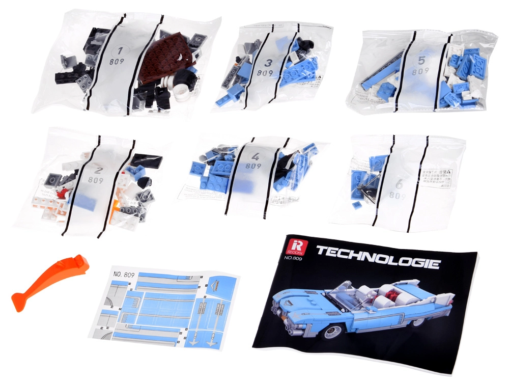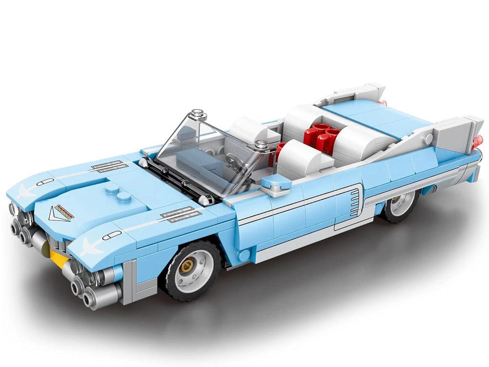 Sastavite kultni automobil u duhu 50-ih: plavi kabriolet s dugom haubom, niskom siluetom i kromiranim detaljima. Od 308 dijelova izradit ćete realističan model s elegantnim dizajnom, srednjom težinom i stabilnom konstrukcijom – idealno za ljubitelje tehničkih slagalica i klasične automobilske estetike.