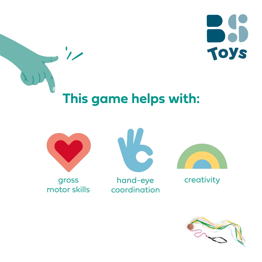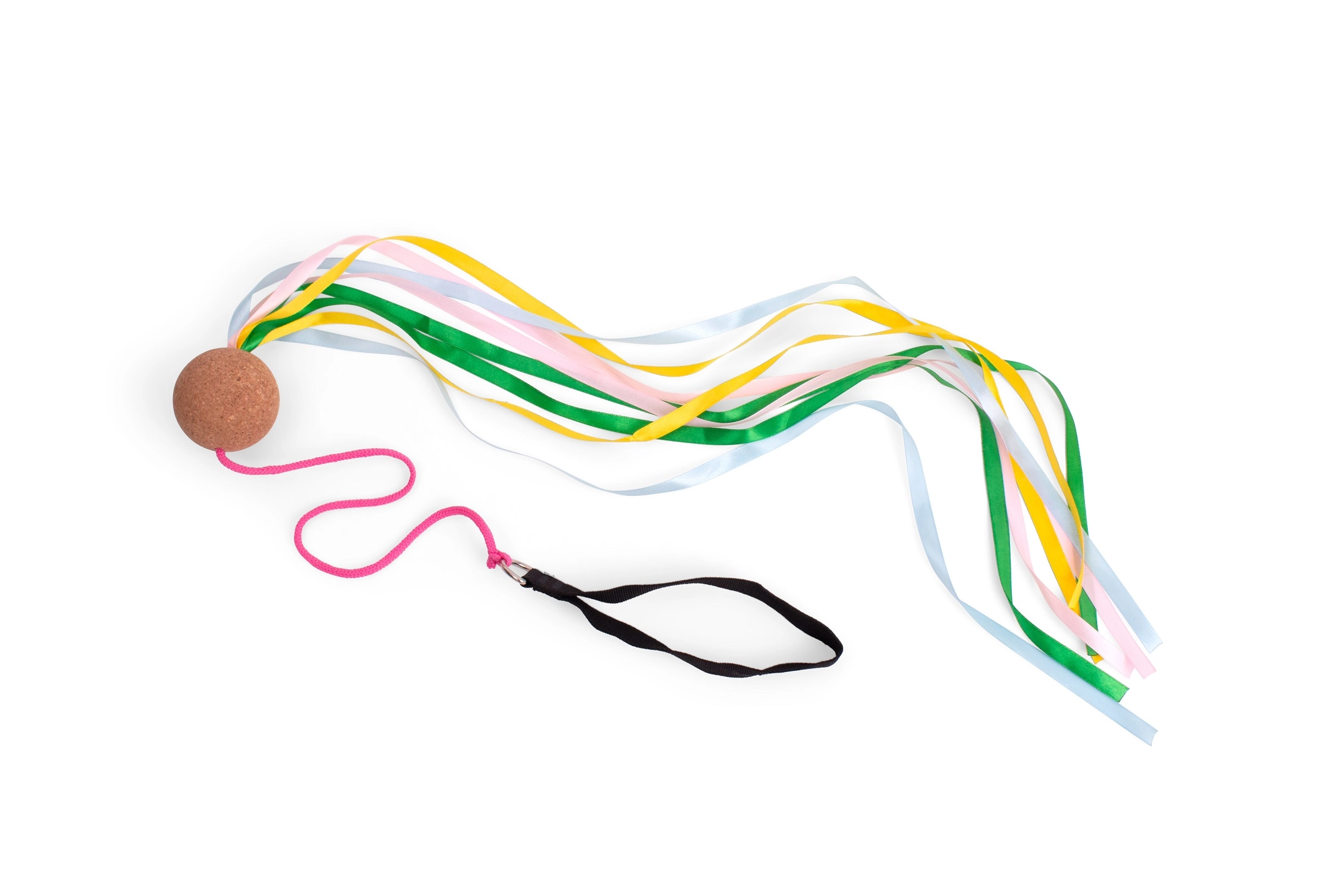 Odlično je pogodan za igru kod kuće, školske produžene boravke i kružoke tjelesne aktivnosti. Duge vrpce pružaju atraktivan vizualni efekt, dok plutenasta kugla nudi ugodno, sigurno opterećenje za glatko okretanje.