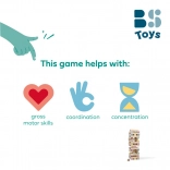 Divovski brojčani toranj pretvara klasičnu balansirajuću igru u pametnu zabavu koja razvija logičko razmišljanje i rad s brojevima. Drveni blokovi izvlače se prema broju na kocki – ili kao jedan odgovarajući komad, ili dva bloka sa zbrojem. To donosi dinamičnu igrivost, napetost i prirodno vježbanje računanja.