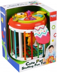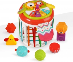 Interaktivna senzorna kocka WOOPIE s glazbenom pločom i simpatičnim životinjama idealna je edukativna igračka za najmlađe. Nudi sortiranje oblika, rotirajuće zupčanike, ogledalce i mekani ulaz za sigurno istraživanje. Dio seta je 7 različitih kockica s različitim oblicima i teksturama koje potiču vizualnu i taktilnu percepciju te razvoj fine motorike. Izdržljiva, sigurna konstrukcija jamči dug vijek trajanja i ugodnu upotrebu.