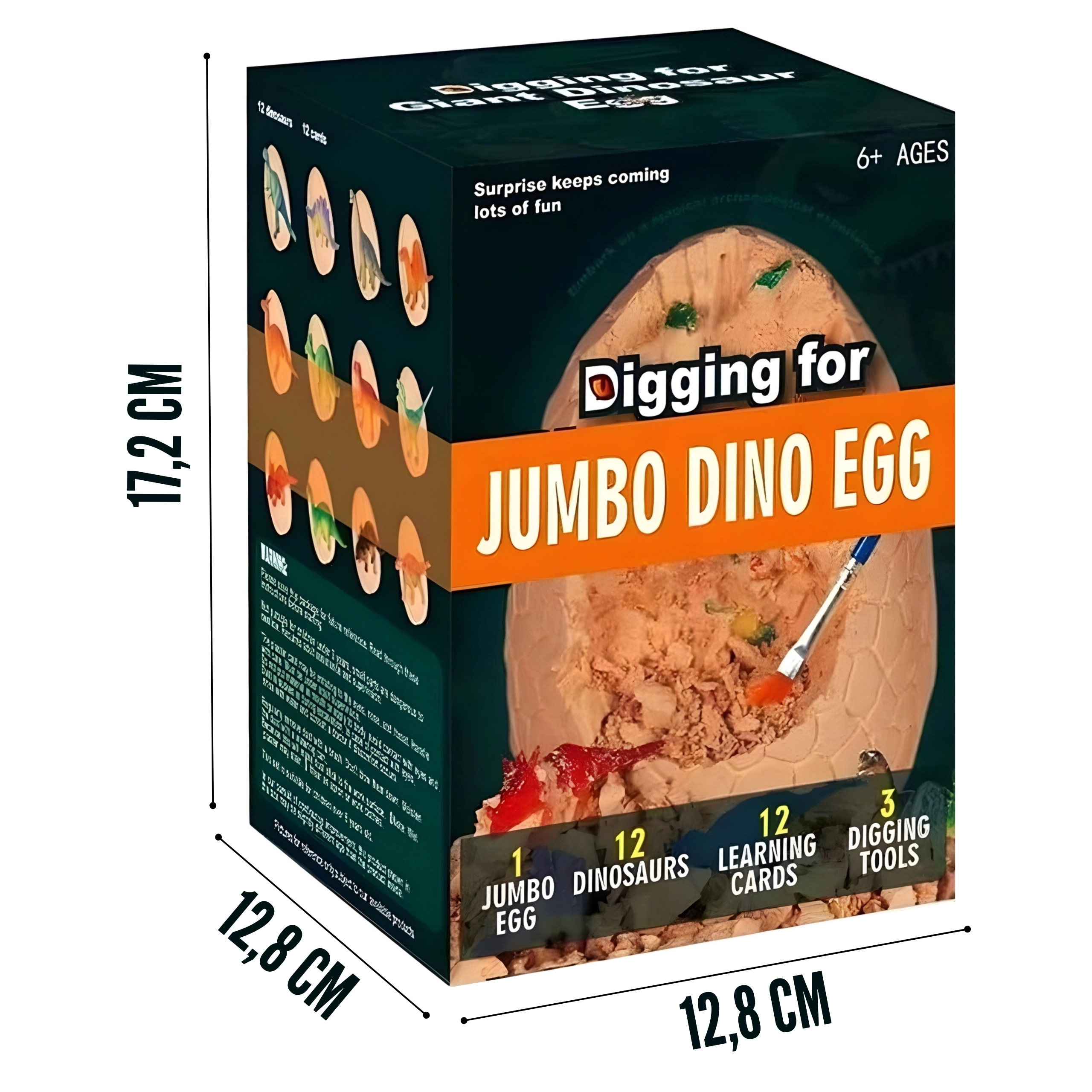 Unutar realističnog jajeta čeka dvanaest malih figurica dinosaura. Djeca ih postupno otkrivaju i doživljavaju autentičnu radost otkrivanja.