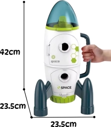 Raketa je izrađena od izdržljive i sigurne ABS plastike te ima praktičnu ručku za lako nošenje. Otvarajući kokpit i vrata omogućuju pristup kontrolnoj sobi i donjem hangaru, pa djeca mogu stvarati vlastite scenarije i razvijati kreativnost, koordinaciju ruka–oko i motoriku. Igračka je pogodna za dječju sobu, vrtić i putovanja.