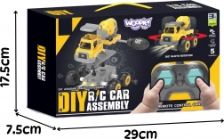 Građevinski bager DIY marke WOOPIE spaja radost montaže s uzbudljivom vožnjom na daljinsko upravljanje. Djeca korak po korak sama sastave vozilo, a zatim ga upravljaju 5-kanalnim daljinskim upravljačem – naprijed, natrag, lijevo, desno i puni okret 360°. Integrirana svjetla daju akciji realističan dojam kao na pravom gradilištu.