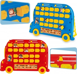 Što se nalazi u pakiranju:- 2 igraće ploče u obliku autobusa (plava i crvena)