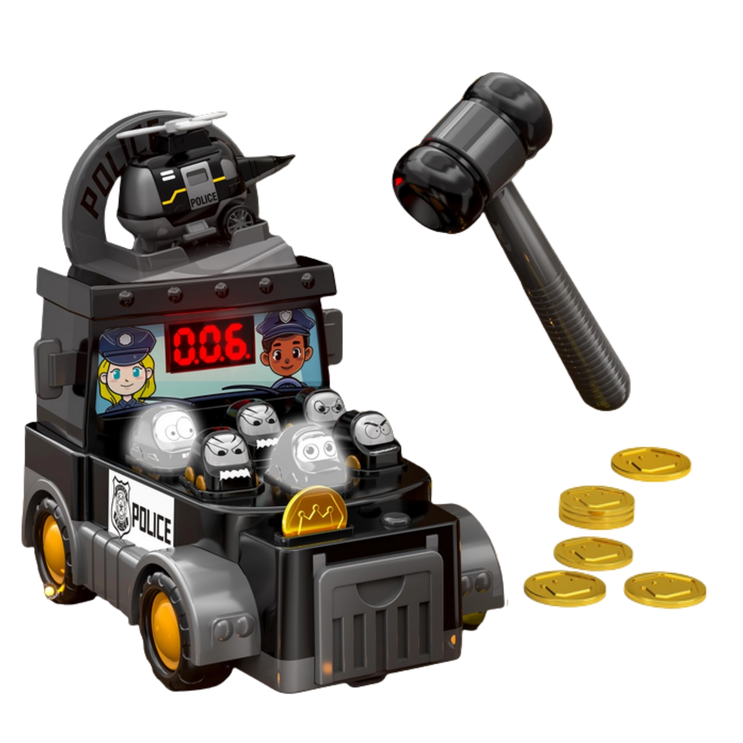 Policijska verzija omiljene igre Udari krticu oduševit će djecu od 3 godine. Dovoljno je uzeti mekani čekić i pogađati „negativce” koji iskaču iz otvora u radio-vozilu. Zahvaljujući zaslonu sa rezultatom djeca lako prate svoj učinak i mogu se natjecati s prijateljima ili roditeljima.
