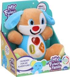 Preslatki interaktivni psić idealna je igračka za najmlađu djecu. Nudi svjetlosne efekte, zvučne efekte i melodije koji se aktiviraju gumbićima na trbuščiću. Zahvaljujući ON/OFF prekidaču sa strane igračku je lako isključiti. Kombinacija mekanog pliša i plastičnog trbuščića potiče osjetilnu percepciju i sigurnu igru.