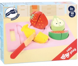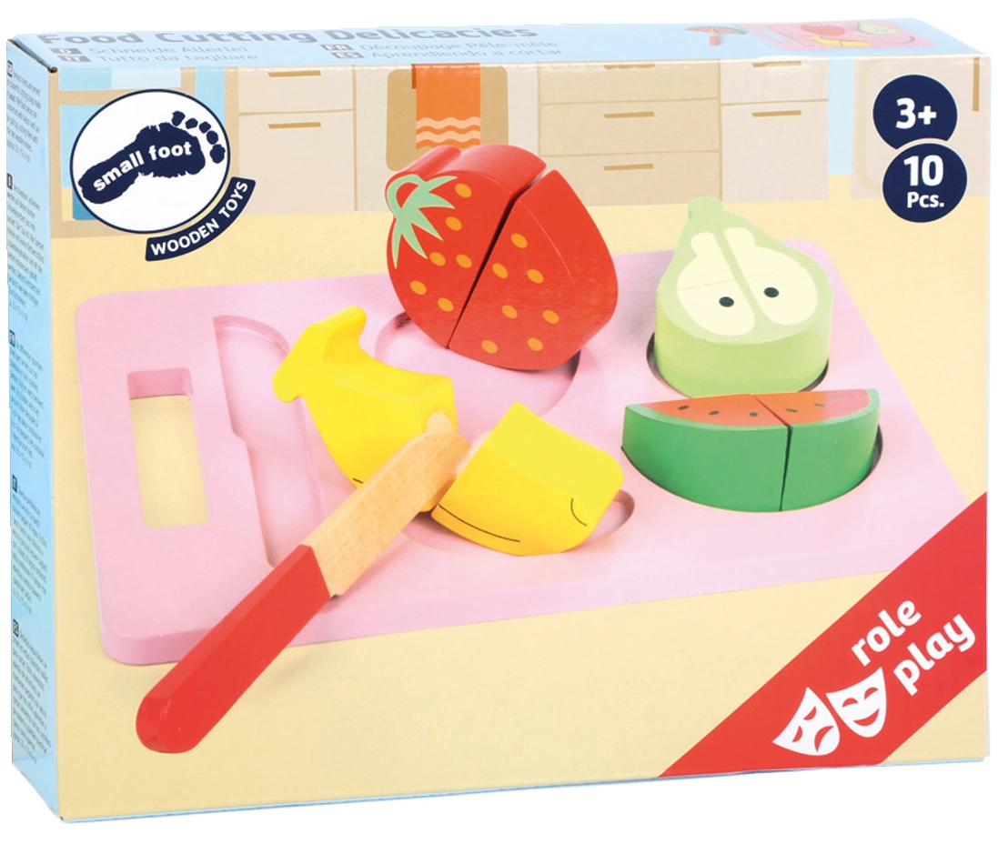 Pripremite djeci zabavnu i istovremeno edukativnu igru s drvenim setom Small Foot. Sigurno rezanje voća na dasci s drvenim nožem razvija finu motoriku, koordinaciju i maštu. Dijelovi voća drže se zajedno pomoću čičak trake, pa ih djeca mogu iznova i iznova „rezati” na pola. Prikladno za djecu od 3 godine.