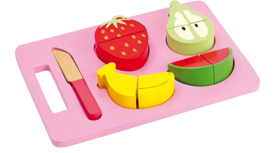 Ovaj šareni drveni set idealan je za dječju kuhinjicu i za vježbanje praktičnih vještina. Djeca će uvježbati hvat, preciznost i naučiti osnove pripreme hrane kroz igru. Svaki komad voća podijeljen je na polovice, a spajanje na čičak omogućuje realističan „rez” s ugodnim zvukom.
