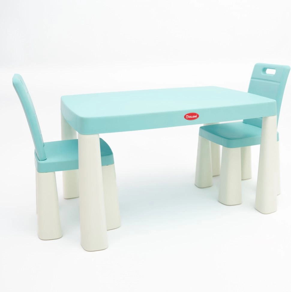 Stol dimenzija cca 83 × 58 × 48 cm pruža dovoljno mjesta za bojice, knjige i kocke. Stolice se mogu koristiti s naslonom ili bez njega, tako da ih lako prilagodite dobi i aktivnosti djeteta. Set je idealan za dječju sobu, igraonicu, dnevni boravak i vrt.