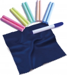 Uključena je kutijica s 10 kreda, 1 crni suhi flomaster i krpica za brisanje – možete početi crtati odmah nakon raspakiravanja.