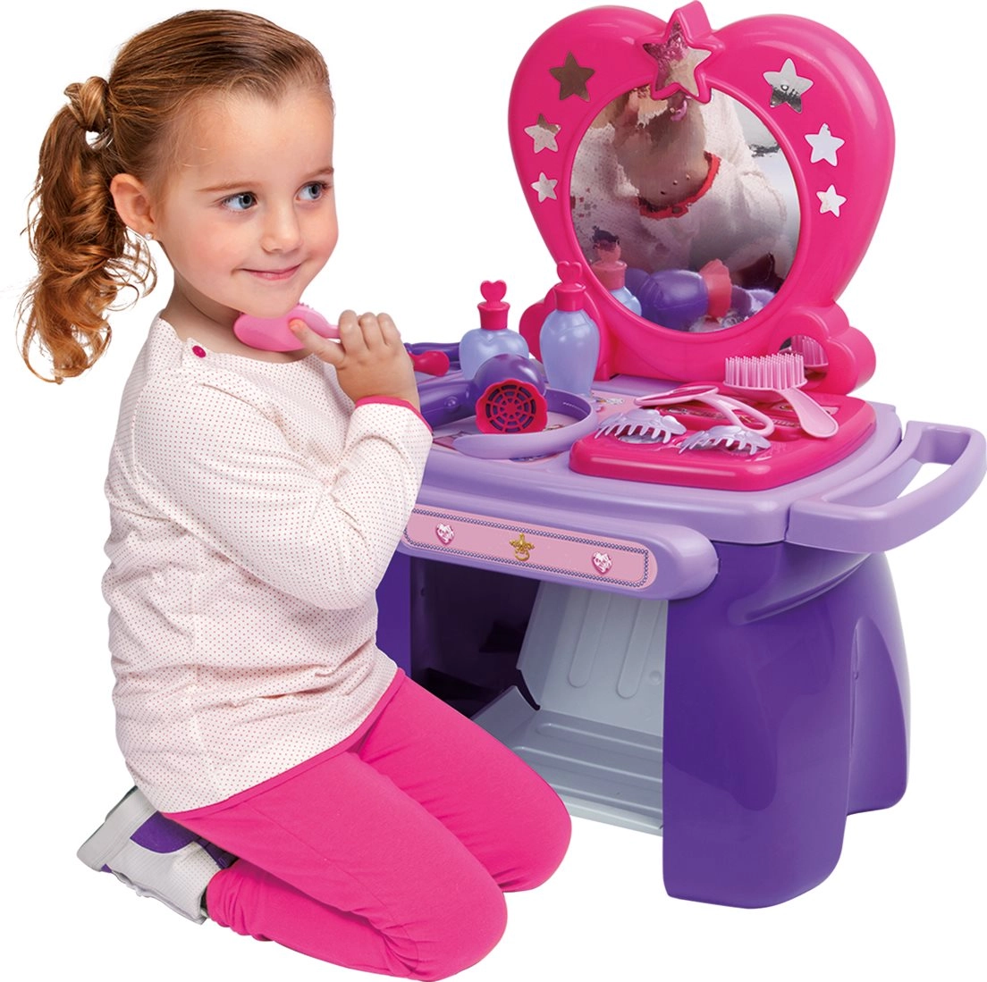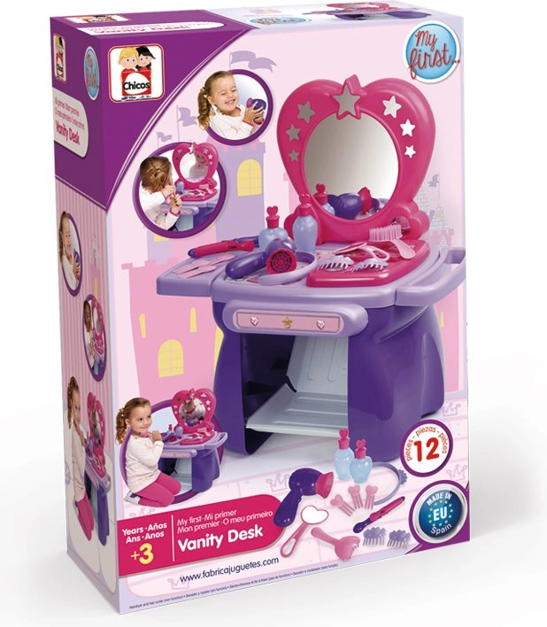 Toaletni stolić Lovely Princess marke CHICOS pretvorit će svaku dječju sobu u malo kraljevstvo ljepote. Zahvaljujući ogledalu u obliku srca, bočnim odlagališnim površinama i spremištu, djeca imaju sve pri ruci za svoju zabavu. Set uključuje i udoban stolić za sjedenje, kako bi se male modnice mogle igrati kao uz pravi toaletni stolić.