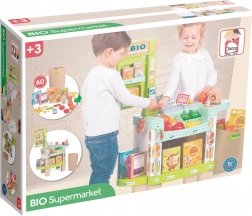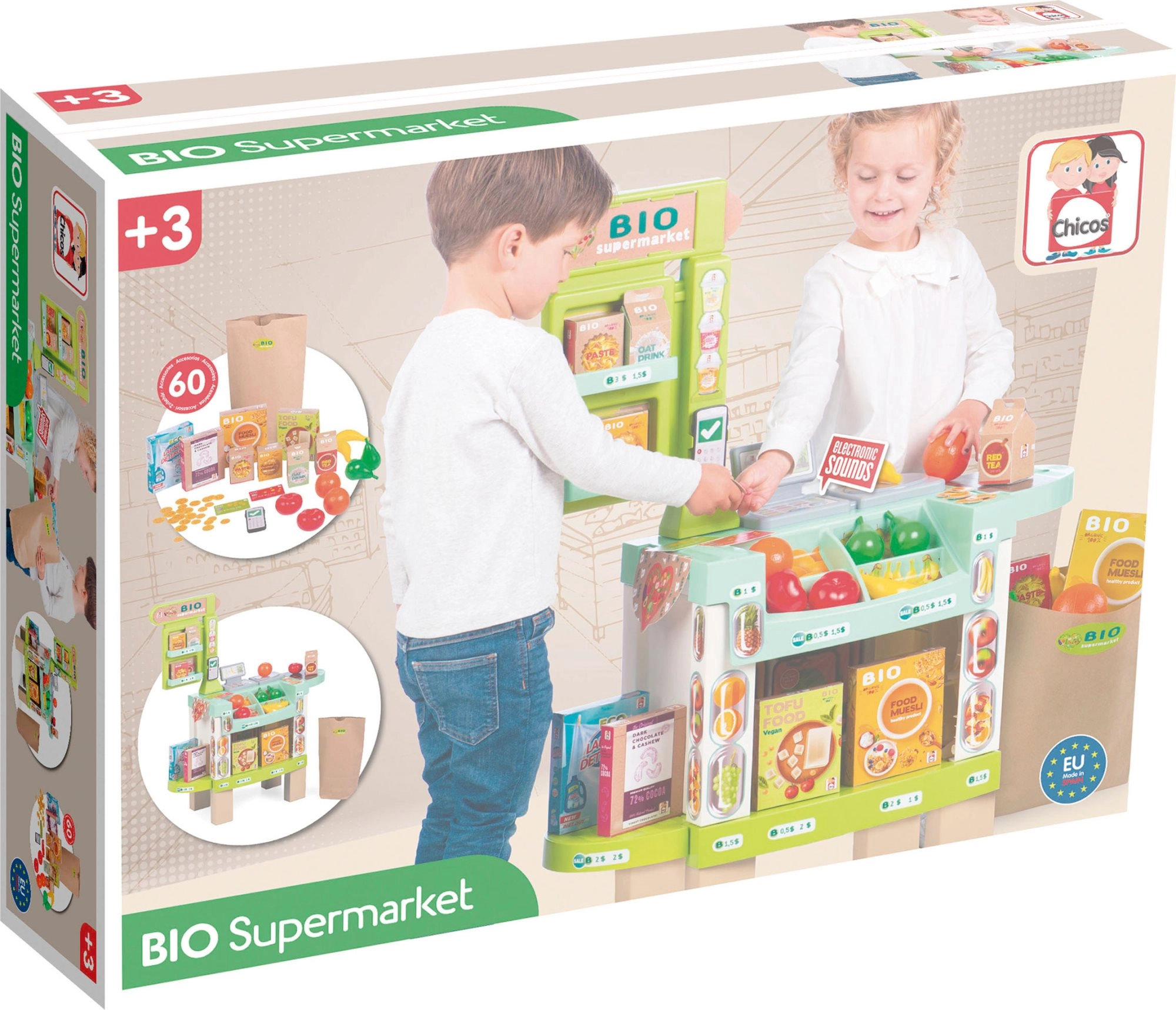 Dječji supermarket BIO CHICOS pretvara sobu u malu trgovinu u kojoj djeca isprobavaju uloge prodavača i kupca. Bogat set od 60 dodataka uključujući voće, kutijice s namirnicama, skener i platni terminal podržava igru uloga i razvoj komunikacije, fine motorike i logičkog razmišljanja.