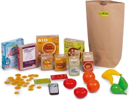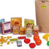 Voće, kutijice s namirnicama, kovanice, telefon i velika BIO shopping torba – sve za potpunu igru kupovine.