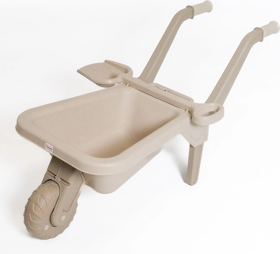 Široka kada prima pijesak, zemlju i sitne grančice, dok čvrste nožice osiguravaju stabilnost pri utovaru. Ergonomske ručke s hvatovima prilagođene su dječjim rukama, a lopata smještena na gornjem dijelu uvijek je pri ruci.
