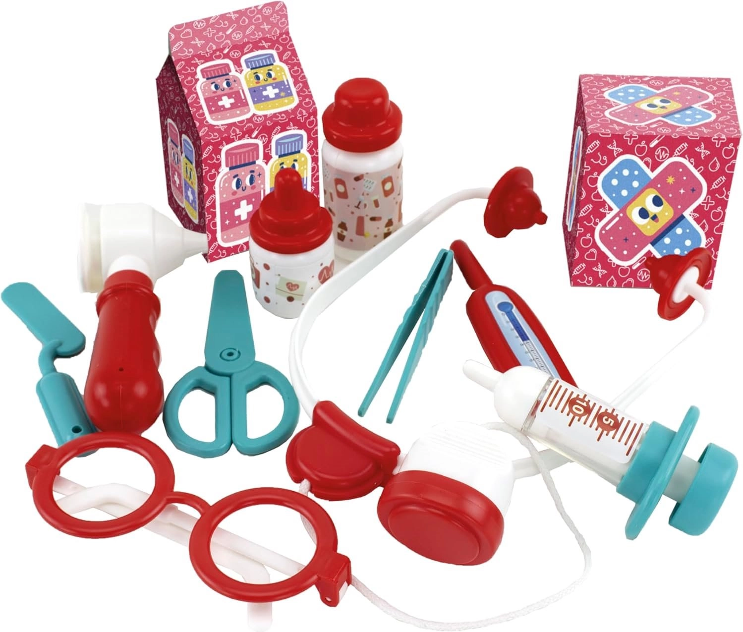 - Liječnički set od 12 dijelova – stetoskop, injekcijska šprica, toplomjer, pinceta, mast, škare i više.