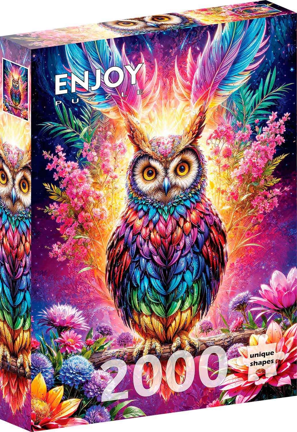 Neonska sova donosi upečatljiv motiv prepun detalja i živopisnih boja koji će vas zabavljati pri svakom dijelu. Puzzle s 2000 dijelova nudi sjajan izazov i ujedno ugodan način za opuštanje i vježbanje koncentracije.