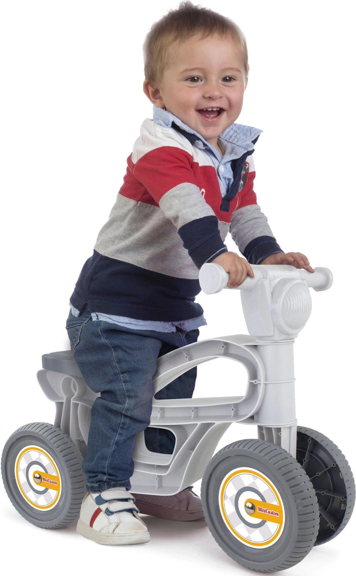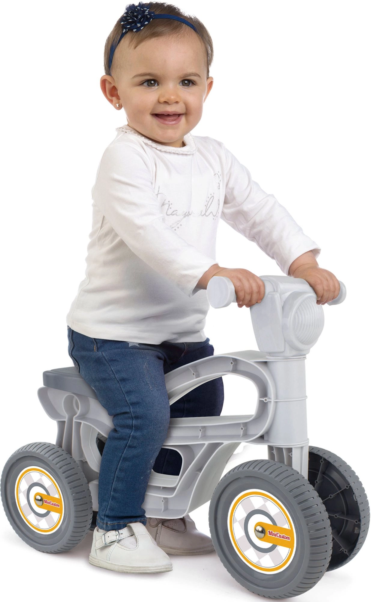 Otkrijte sivu guralicu Mini Custom CHICOS – atraktivan „motor“ za najmlađe vozače. Zahvaljujući maloj težini i četiri kotača, vožnja je stabilna i sigurna, što potiče razvoj motorike i održavanje ravnoteže. Izdržljiva konstrukcija podnosi svakodnevno korištenje u domu i u vrtu.
