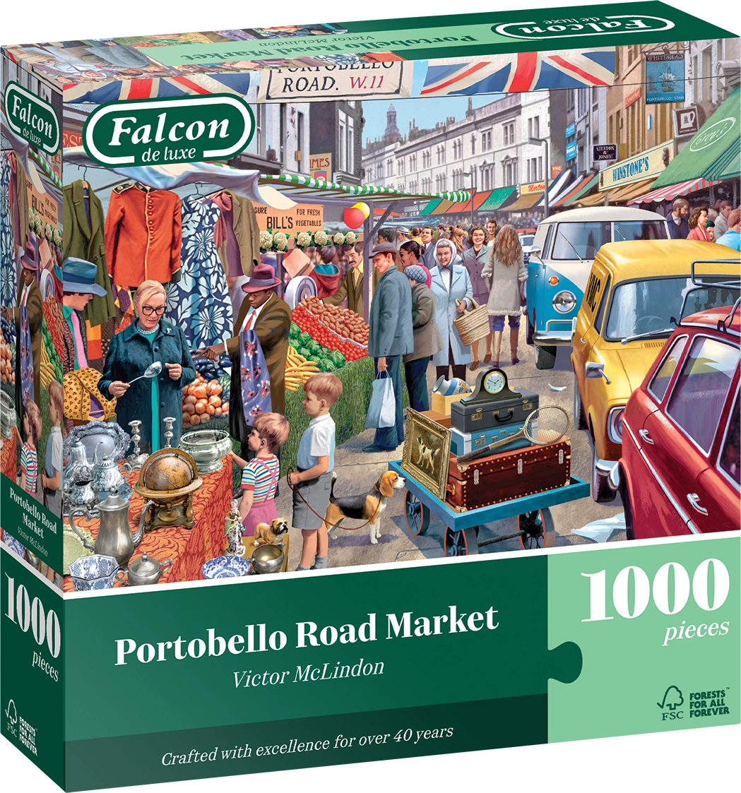 Otkrijte jedinstveni humor i detaljne ilustracije Jana van Haasterena na temu užurbane tržnice u Portobellu. Svaki pogled otkriva nove šale, likove i tipične “potpise” autora – od peraje morskog psa do ludih situacija u gužvi. Puzzle iz kolekcije FALCON / JUMBO ističu se preciznom izradom i ugodnim materijalom za lako slaganje.