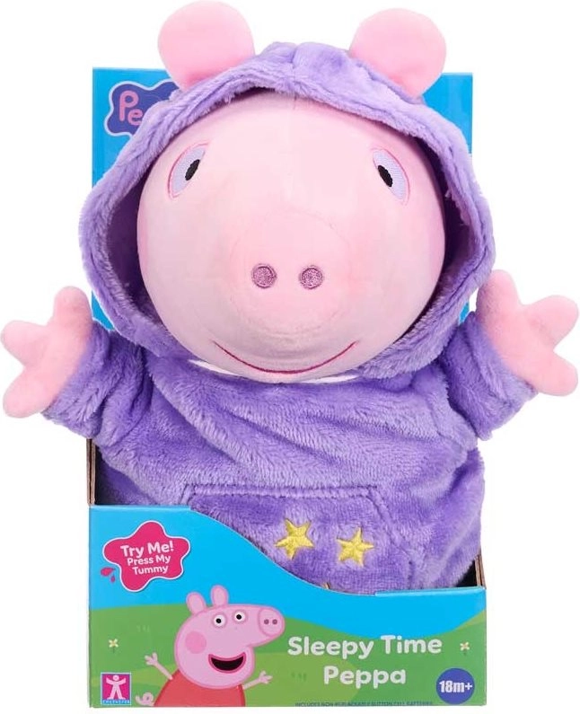 Razveselite djecu plišanim prijateljem iz omiljene serije PEPPA PIG. Ova mekana igračka u pidžami stvorena je za maženje i pomaže stvoriti ugodnu večernju atmosferu. Nakon pritiska na trbuščić čut ćete govorne fraze koje će razveseliti male obožavatelje.