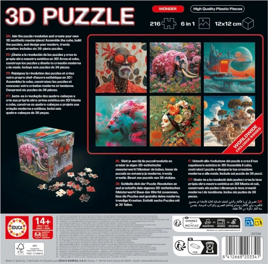 Otkrijte kreativno slaganje s 3D puzzle kockom WONDER od EDUCA. Zahvaljujući promišljenoj podjeli na 6 cjelina po 36 dijelova, slaganje postaje pregledan i zabavan proces koji će zaokupiti početnike i napredne ljubitelje slagalica.