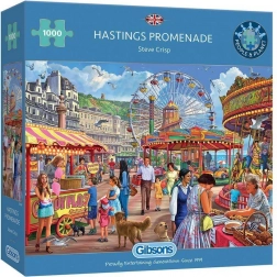 Otkrijte čar britanskog primorskog gradića s puzzlama Gibsons Šetalište u Hastingsu. Precizno izrezani dijelovi savršeno se uklapaju, pa je slaganje glatko i ugodno. Motiv je prepun detalja – od štandova na molu do šetača – pa vas očekuje zabava za mnoge sate.
