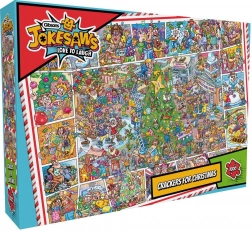 Uđite u svijet blagdanske zabave s puzzleom GIBSONS Jokesaws: Crackers for Christmas. Tisuću precizno izrezanih dijelova donosi detaljnu ilustraciju prepuna božićnih šala, koja će razveseliti i kolekcionare i povremene slagatelje. Zahvaljujući udobnom formatu nakon sastavljanja 68 × 49 cm, odlično odgovara većini stolova i podloga.