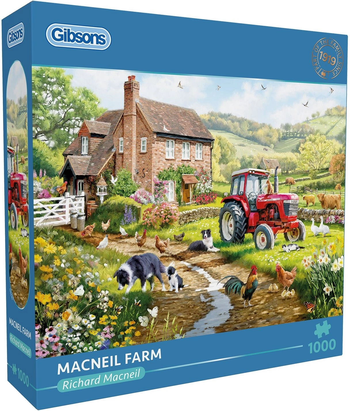Uživajte u opuštanju i zabavi uz kvalitetnu slagalicu brenda GIBSONS. Ilustracija „Macneilova farma“ nudi 1000 dijelova prepunih detalja i boja, što će razveseliti ljubitelje seoskih motiva. Nakon slaganja, slagalica ima dimenzije cca 68 × 49 cm, idealno za uokvirivanje ili izlaganje.