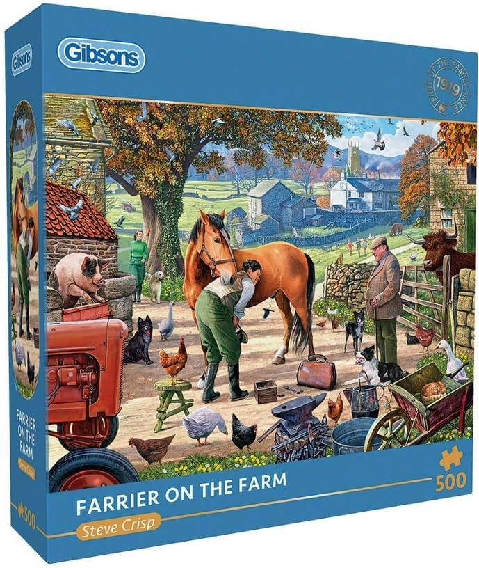 Uživajte u opuštanju uz kvalitetnu slagalicu marke GIBSONS. Motiv Kovač na farmi sadrži 500 pažljivo izrezanih dijelova, a nakon sastavljanja stvara sliku dimenzija oko 49 × 34 cm. U pakiranju se nalazi i predložak motiva za lakše slaganje – idealno za mirne večeri i kao dar ljubiteljima slagalica.