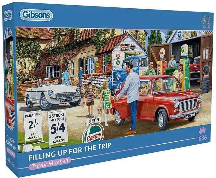 Panoramske puzzle GIBSONS „Tankiranje prije puta“ idealan su izbor za ljubitelje detaljnih ilustracija i opuštene relaksacije. Zahvaljujući 636 čvrstim dijelovima uživat ćete u glatkom slaganju, a na kraju će vas nagraditi dojmljiva scena s atmosferom putovanja.
