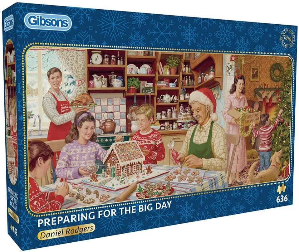 Uživajte u opuštanju s kvalitetnim panoramskim puzzleima marke GIBSONS. Motiv Pripreme za veliki dan prikazuje šarmantnu scenu punu detalja i boja. Puzzle od 636 dijelova razveselit će početnike i napredne slagatelje, a nakon sastavljanja stvaraju elegantnu panoramsku sliku dimenzija cca 69 × 32 cm. Dio pakiranja je i predložak motiva za lakše slaganje.