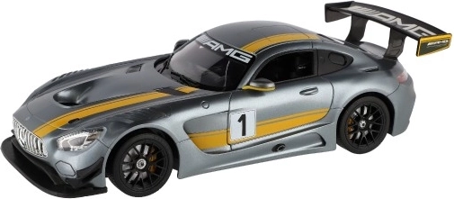 Otkrijte precizno izrađen RC model MERCEDES-AMG GT3 u sivoj boji sa žutim prugama i izraženim stražnjim krilom. Detaljna karoserija ističe se sportskim linijama i autentičnim elementima trkaćeg automobila, koji će oduševiti svakog ljubitelja brzih vozila.